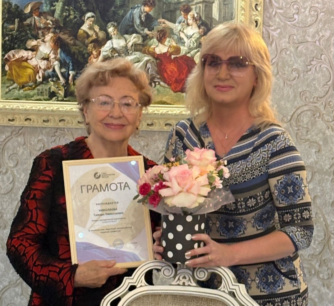 На торжестве у меня была приятная миссия — вручила Тамаре Николаевне федеральную награду. За многолетнюю творческую деятельность и служение профессии удостоена грамоты, подписанной председателем Союза журналистов России Владимиром Соловьевым. Другая высокая федеральная награда пока в пути. Впереди еще одно награждение нашего дорогого юбиляра.