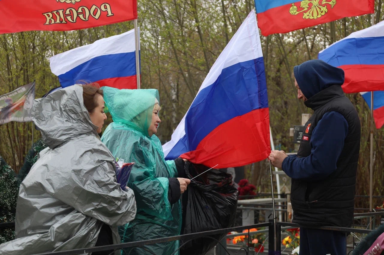 28 апреля сотрудники «Комсомолки», волонтеры организации «Шьем нашим», курсанты ЧВВАКУШа заменили флаги на кладбище «Горняк» в г. Копейск.